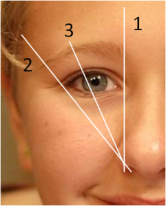 2. To figure out where the start of your brow should be, take a straight edge (a pencil, ruler, anything) and hold it against the side of the tip of your nose pointing straight up and down. It should form a line like #1 in this picture:
