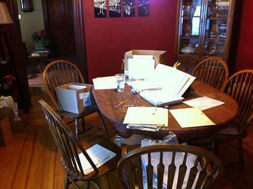 First I attacked the dining room. Cleaned it from top to bottom–multiple moppings of the floor, polishing the table and chairs, wiping down walls & woodwork. The whole shebang. That took me a full day.