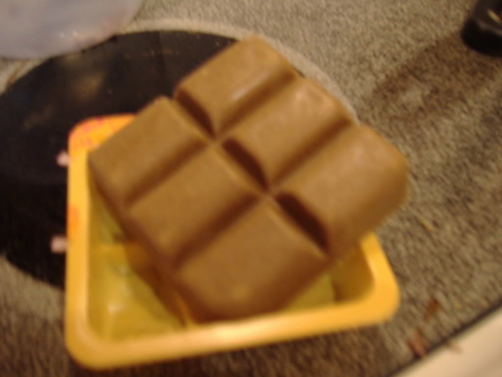 Here is what they look like out of the package. I think that it’s oil, thickener, and the spices all formed together in the cubes. The directions say to add several cups of water and then to pop the cubes in and mix until they dissolve.