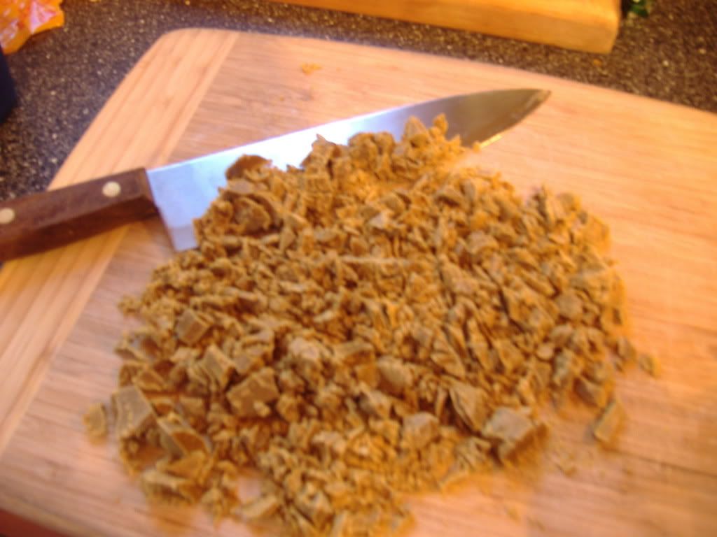 I’m not particularly patient, so I speed up the process by chopping up the cubes. More surface area means that it dissolves faster.