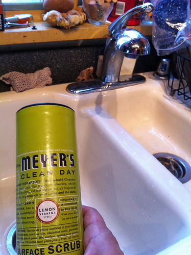 That goes along with the advice that the awesome Heather Solos of Home Ec 101 gave me–for goodness sake, give the cleaner time to work! I’ve found out that many of the products that I wasn’t really happy with. . . well. .. it turned out I was spraying and wiping right away without giving the product time to work. Operator error rather than product error. So remember, whatever cleaner you are using, seriously, give it a couple of minutes and then you usually won’t have to scrub so hard.